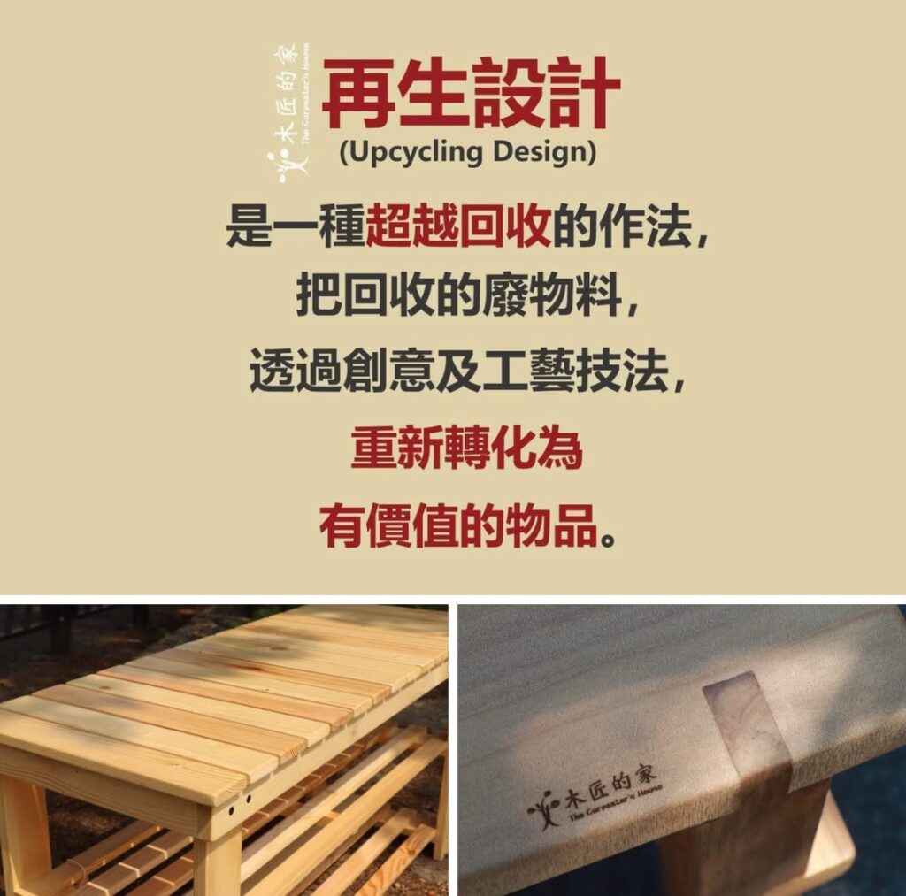 木匠的家「再生木作」邁入第十年,累計搶救約70公噸廢棄實木家具,以再生設計賦予嶄新價值和生命,同時幫助弱勢就業、減少資源浪費及焚化物污染。